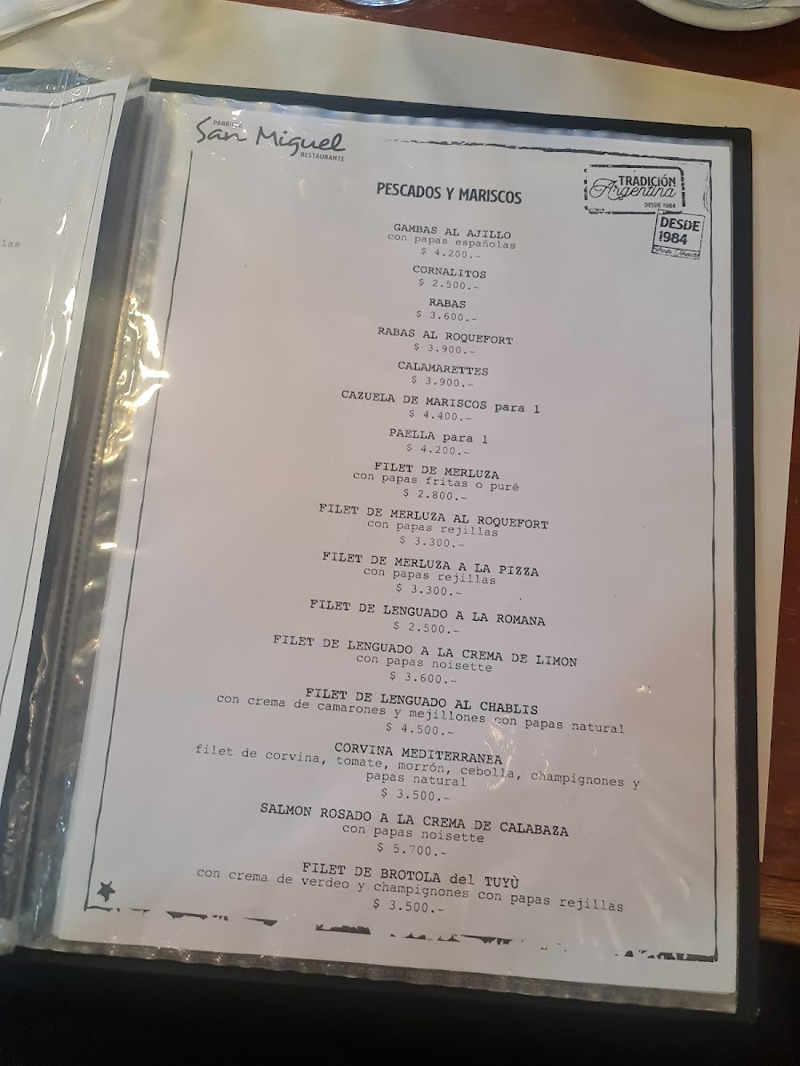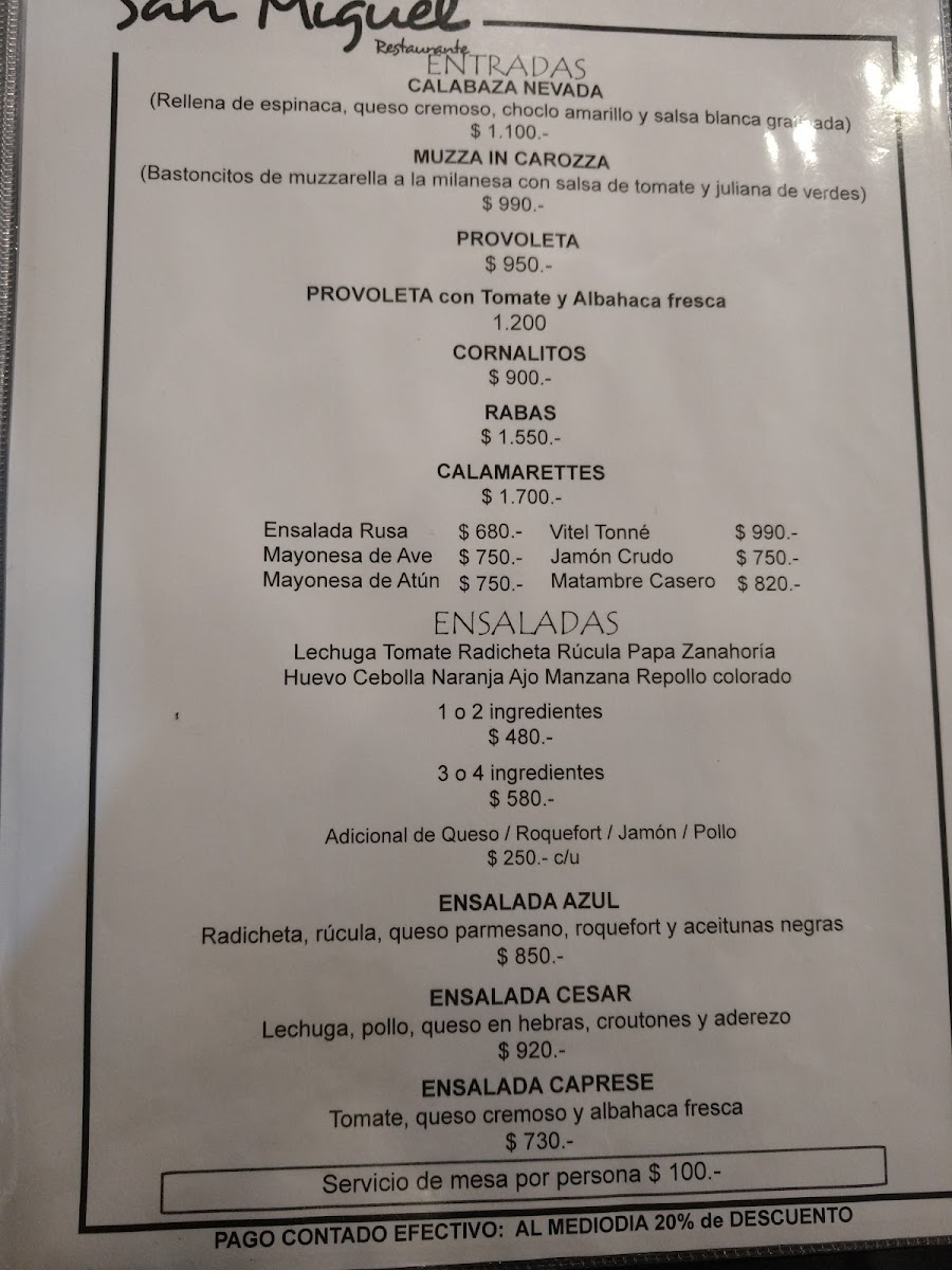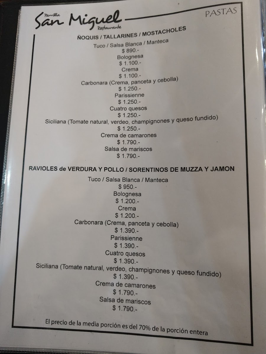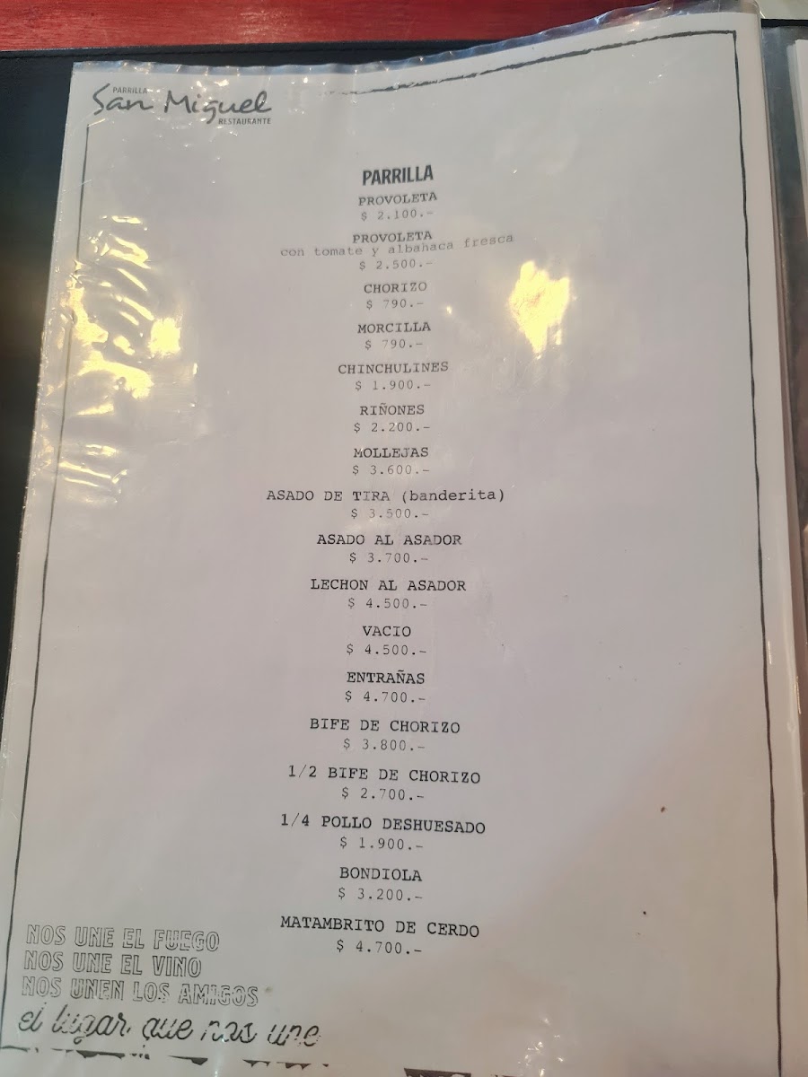 The Parrilla San Miguel Menu offers a delightful mix of authentic Argentine flavors, showcasing the finest grilled meats and traditional dishes. Located in the heart of Santa Teresita, Provincia de Buenos Aires, Argentina, this spot is a favorite for locals and visitors alike. From sizzling steaks to perfectly cooked sausages, everything is prepared with the utmost care and attention to detail. Whether you're craving a juicy rib-eye or the flavorful chorizo, each dish promises to deliver a true taste of Argentine grilling.